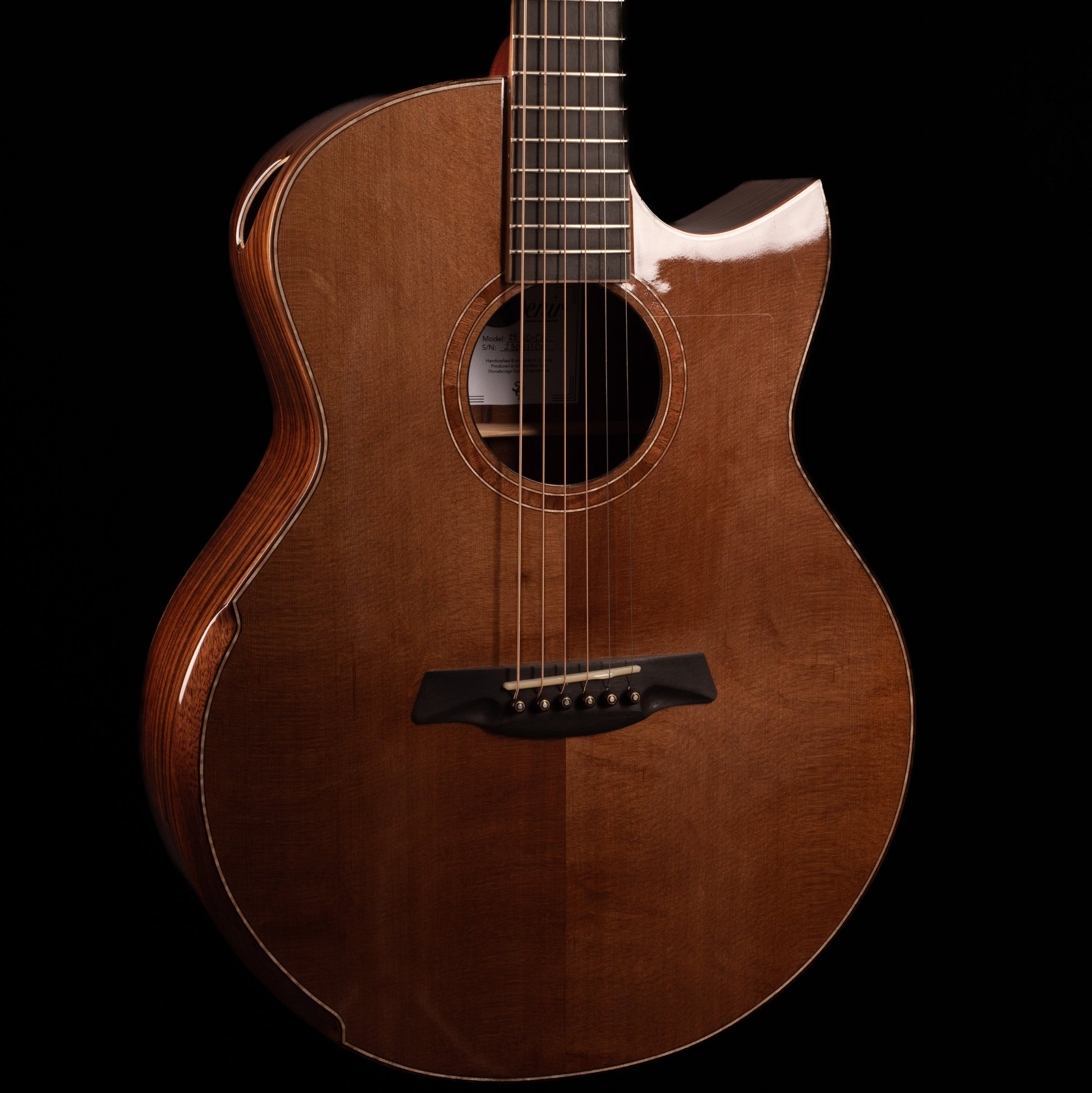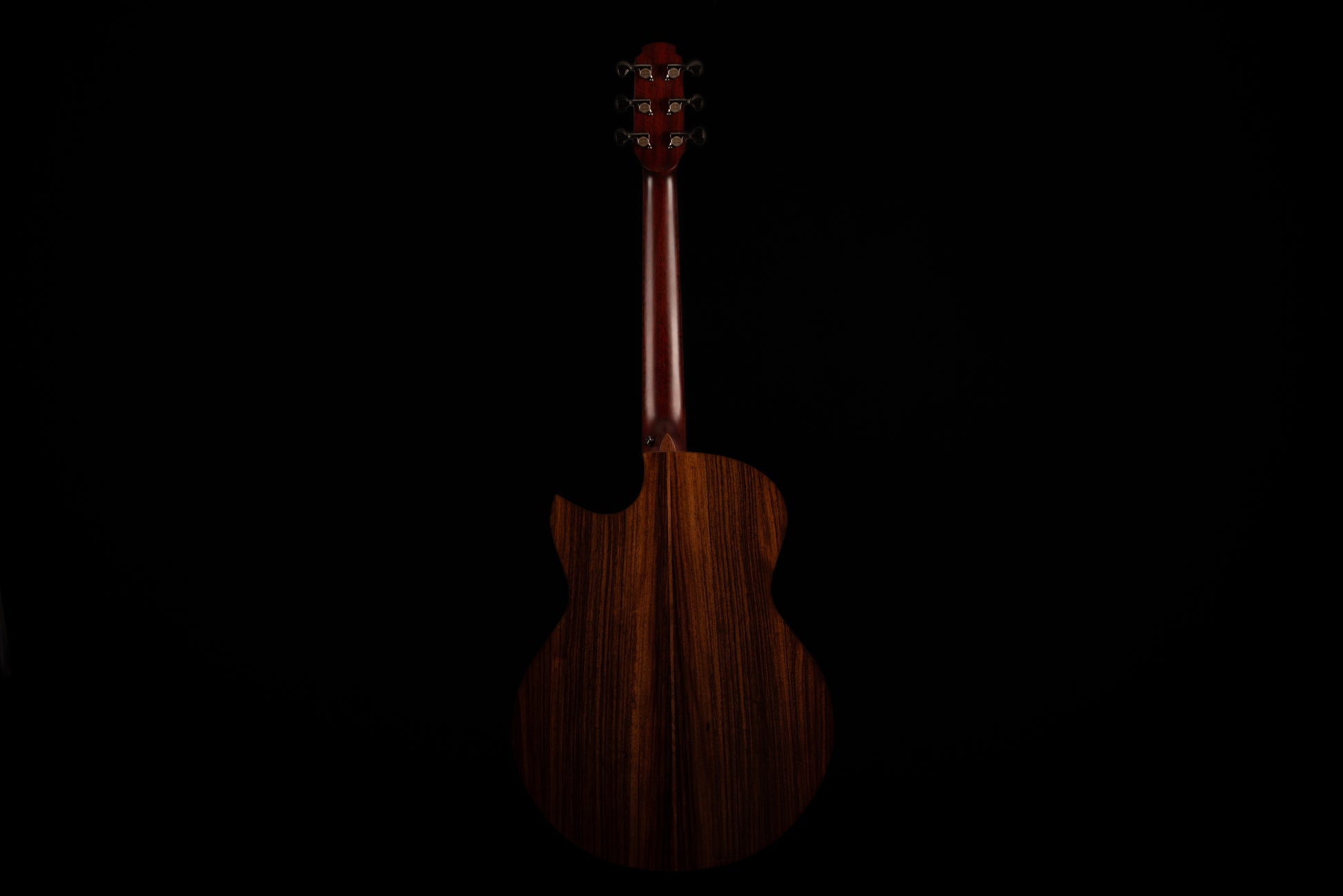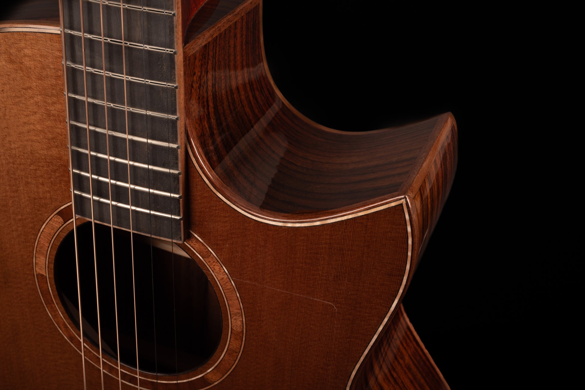 Individually Voiced Top • Florentine Cutaway • Soundport • Beveled Armrest • Polished Bone 45mm Nut • Polished Bone 60mm Saddle • Reverse Honduran Mahogany Kerfing • Japanese Hide Glue
