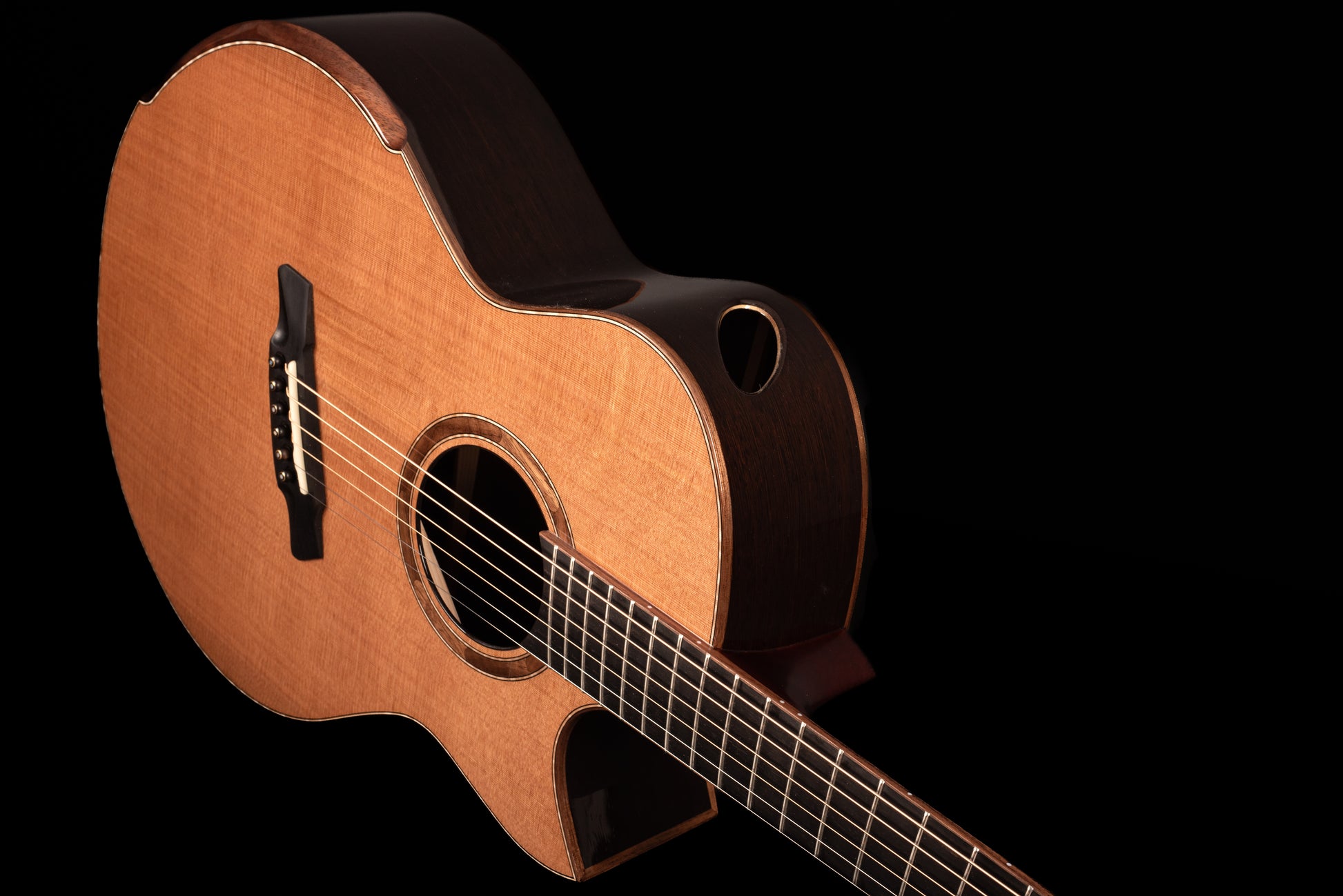 Individually Voiced Top • Florentine Cutaway • Soundport • Beveled Armrest • Polished Bone 45mm Nut • Polished Bone 60mm Saddle • Reverse Honduran Mahogany Kerfing • Japanese Hide Glue