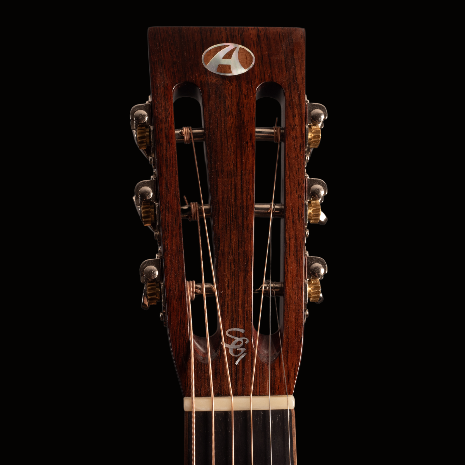 Avenir Logo at Top of Headstock
